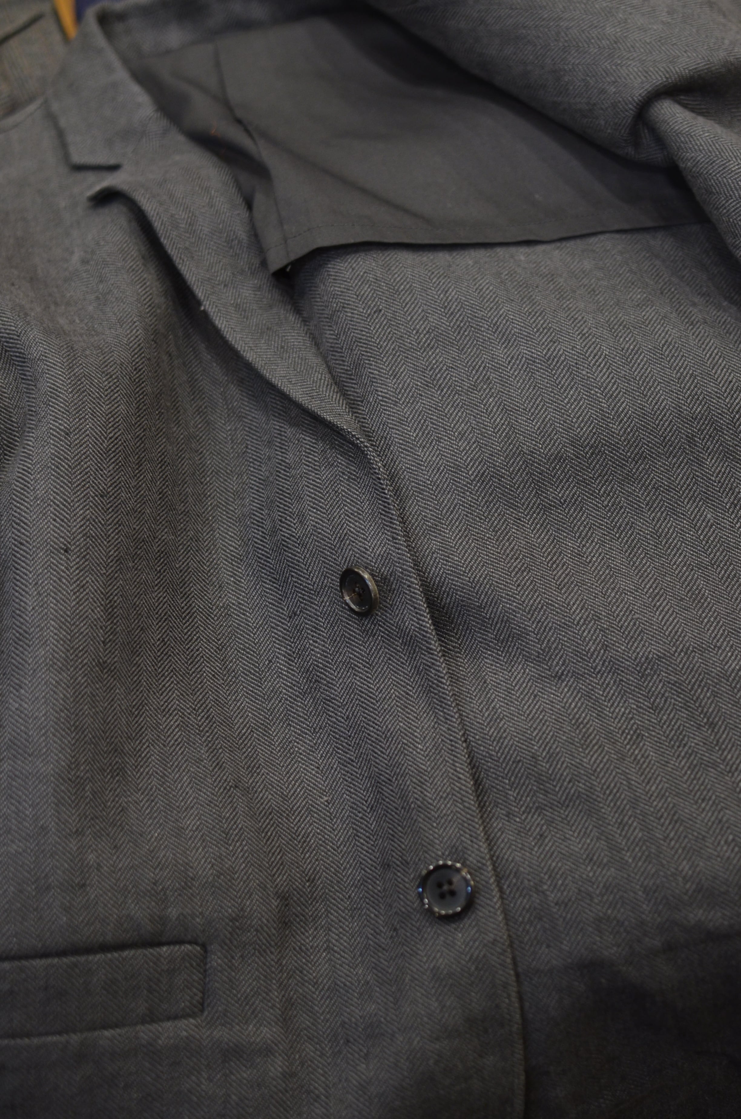 ヘリンボーンのリネン100%生地を使用したアイテム。